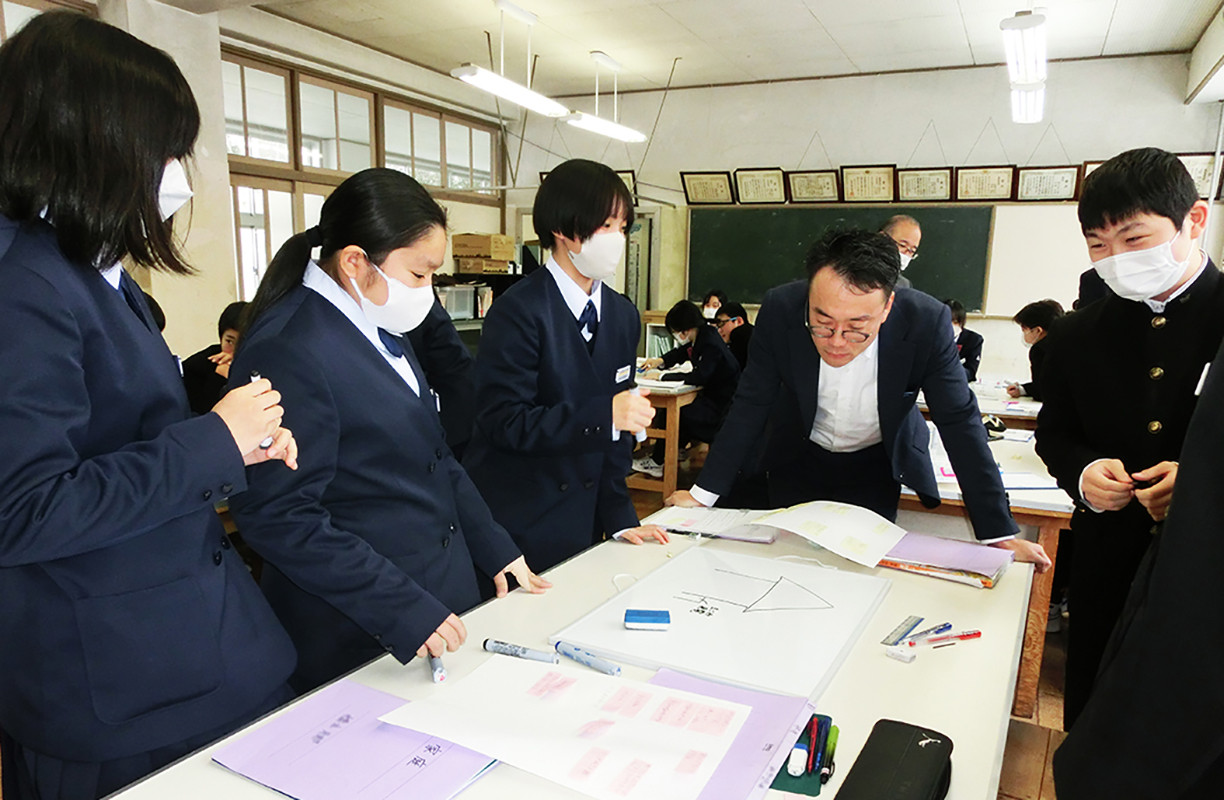 学校教育目標「自律 貢献 創造」の具現化のために総合的な学習の時間を中核として、「食育」「エネルギー教育」「国際理解教育」とSDGsを相互に関連させた教科等横断的な教育課程を編成しています。また持続可能な社会を創る人材を育成することを目的として、生徒一人ひとりが当時者意識をもてるようにストーリー性を重視した学びを、外部の学習協力者を活用して実現しています。第1学年では、食品ロスを無くすために省エネクッキングを実施し、環境を意識した食生活や料理方法を考えています。第2学年では、緑のカーテンに取り組んだり、再生可能エネルギーを秋田沖の風力発電と関係づけて持続可能な未来社会について考えたりしています。第3学年では、気候変動の影響を最も受けるキリバスの中学生とのオンライン交流を通して、気候変動をグローバルな視点で考えています。このように各学年において、グローバルな諸課題を実社会や実生活と結びつけることで当事者意識を高め、よりよく課題を解決していくための行動を促しています。