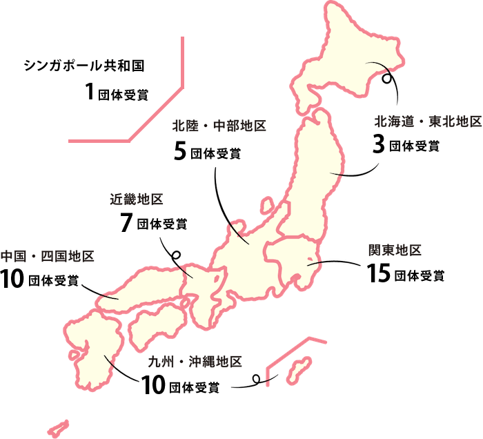 注:入賞団体の所在地の都道府県コード順、同一都道府県内は団体名の五十音順に掲載しています。