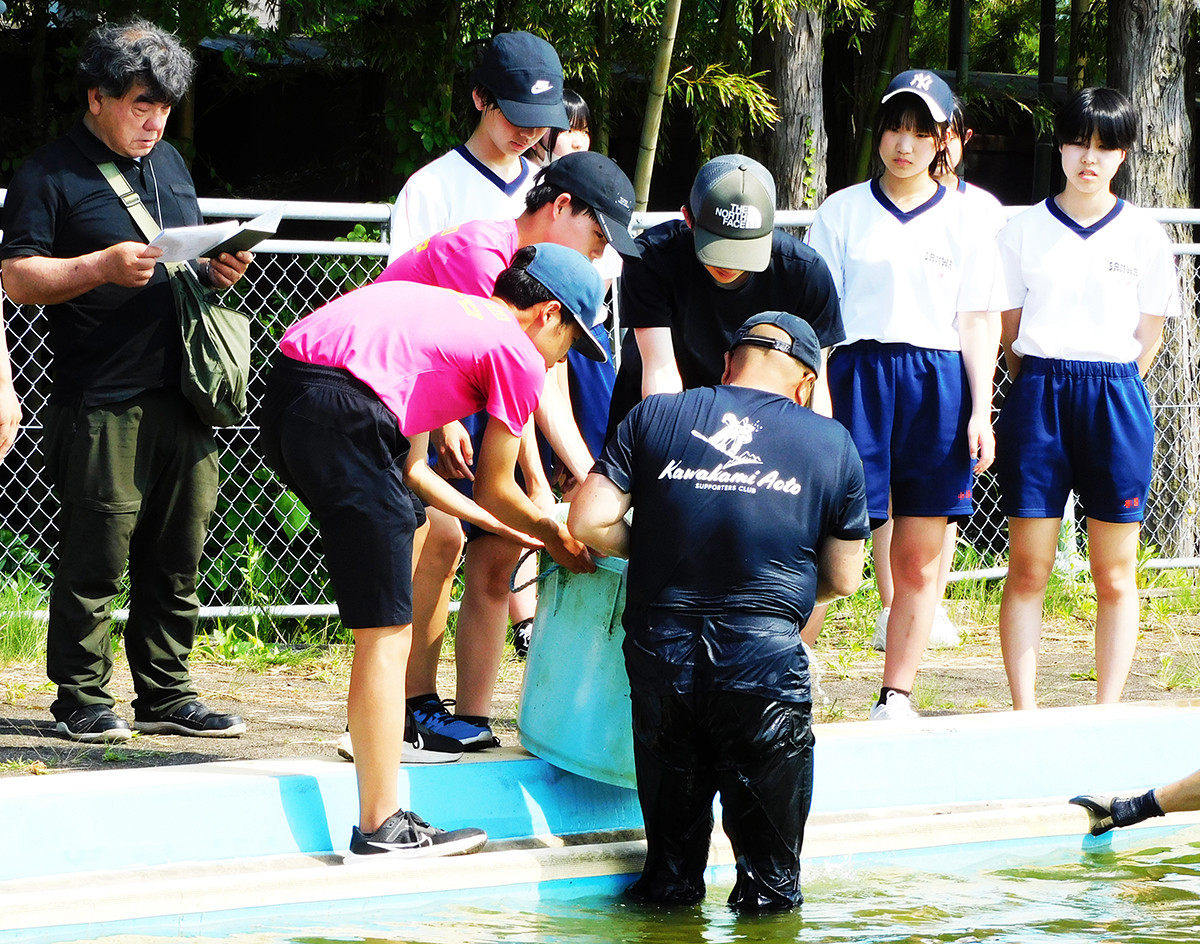 上越市立三和中学校は、2015年に上越市で中学校区ごとに「地域青少年まちづくりワークショップ」がスタートしたのをきっかけに、総合的な学習の時間を中心に、生徒が主体的に地域の課題を考え、解決しようとする活動を展開しています。ワークショップは、生徒会執行部を中心に希望者を募って構成され、地域コーディネーターがファシリテーターとなって、毎年生徒主体で活動の方向性を決めています。昨年度の踏襲ではない、自分たちの活動計画をたてて取り組んでいます。これまでの活動は3期に分けられ、第1期(2015年~2018年)は「さんわ音頭の復活と継承」、第2期(2019年~2022年)は「谷内池に視点を移した活動、オニバスの再生を目指して」、第3期(2023年~)は「地域貢献へ」と、活動の主体となる生徒の願いを反映してテーマや活動内容が発展していきます。さんわ音頭の小学校への普及活動、祭りへの出店や参画、地域の池に着目した演劇、専門家との協働によるオニバスの再生など、コロナの時期にも方向を模索して活動を継続しています。第3期は、さらに生徒会が中心になり、3年生だけでなく全校体制のボランティア活動を計画しています。