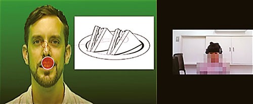 アイトラッキングテスト/英語母語話者が現実単語を発音するのを見て発音する児童の注視を示すバブル